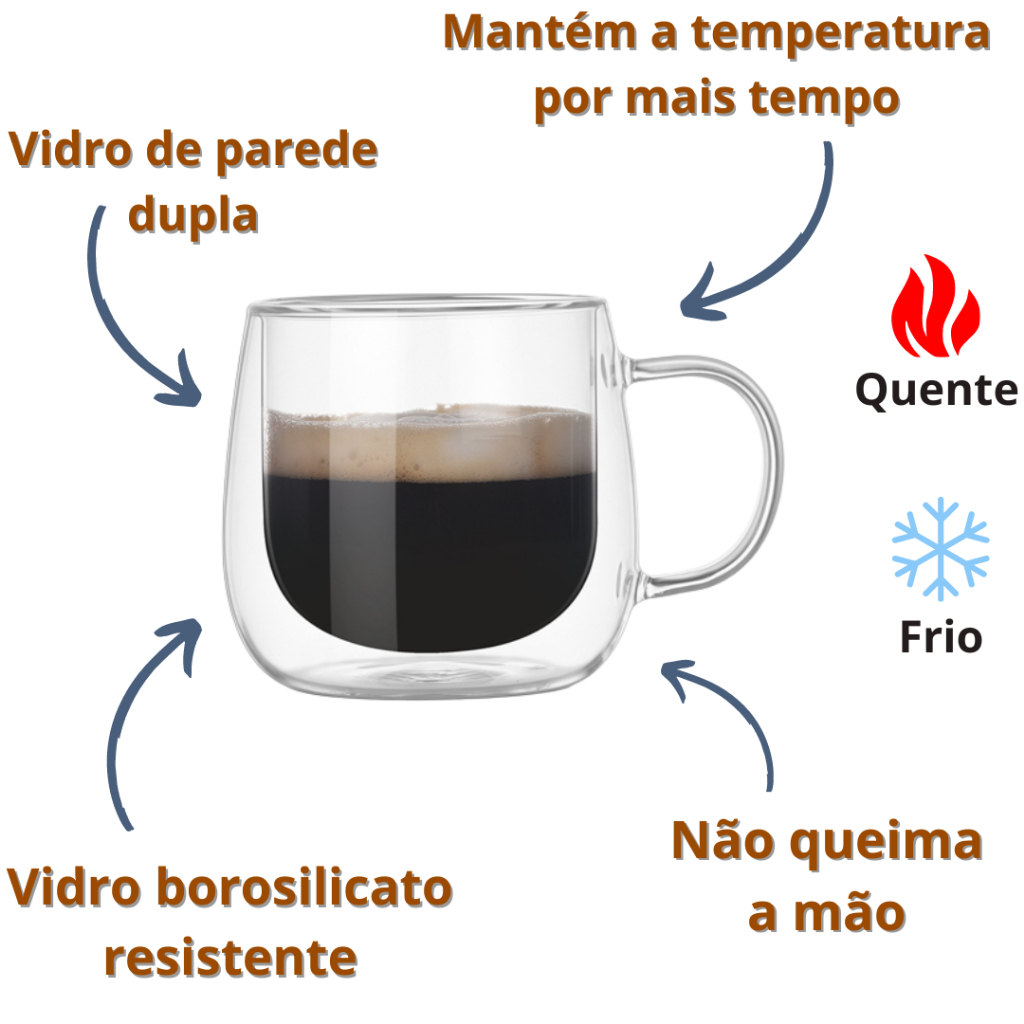 Conjunto De Xicara Vidro Duplo Com Pires Caneca Parede Dupla 4un 80ml