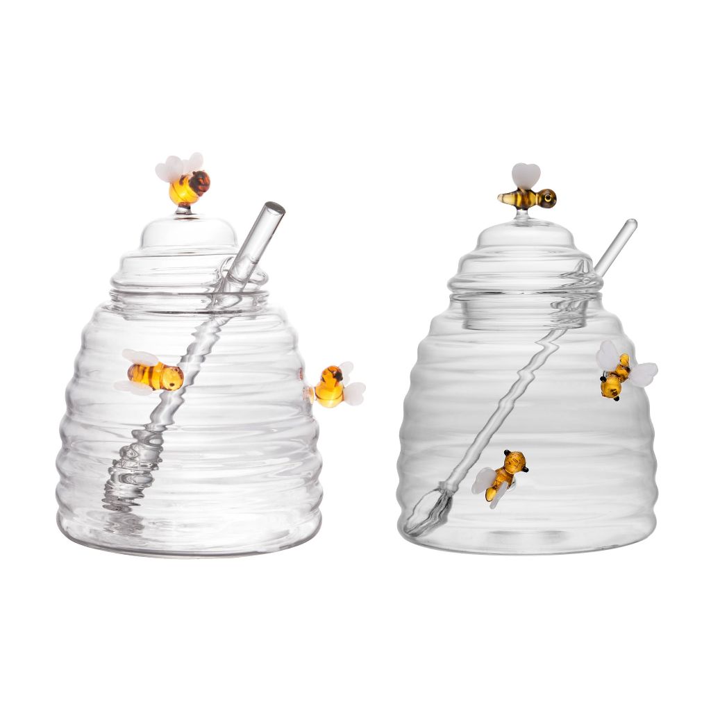 Conjunto de Xícaras Café e Chá, Açucareiro e Meleira de Vidro Borossilicato Lovely Bee 500ml – Lyor