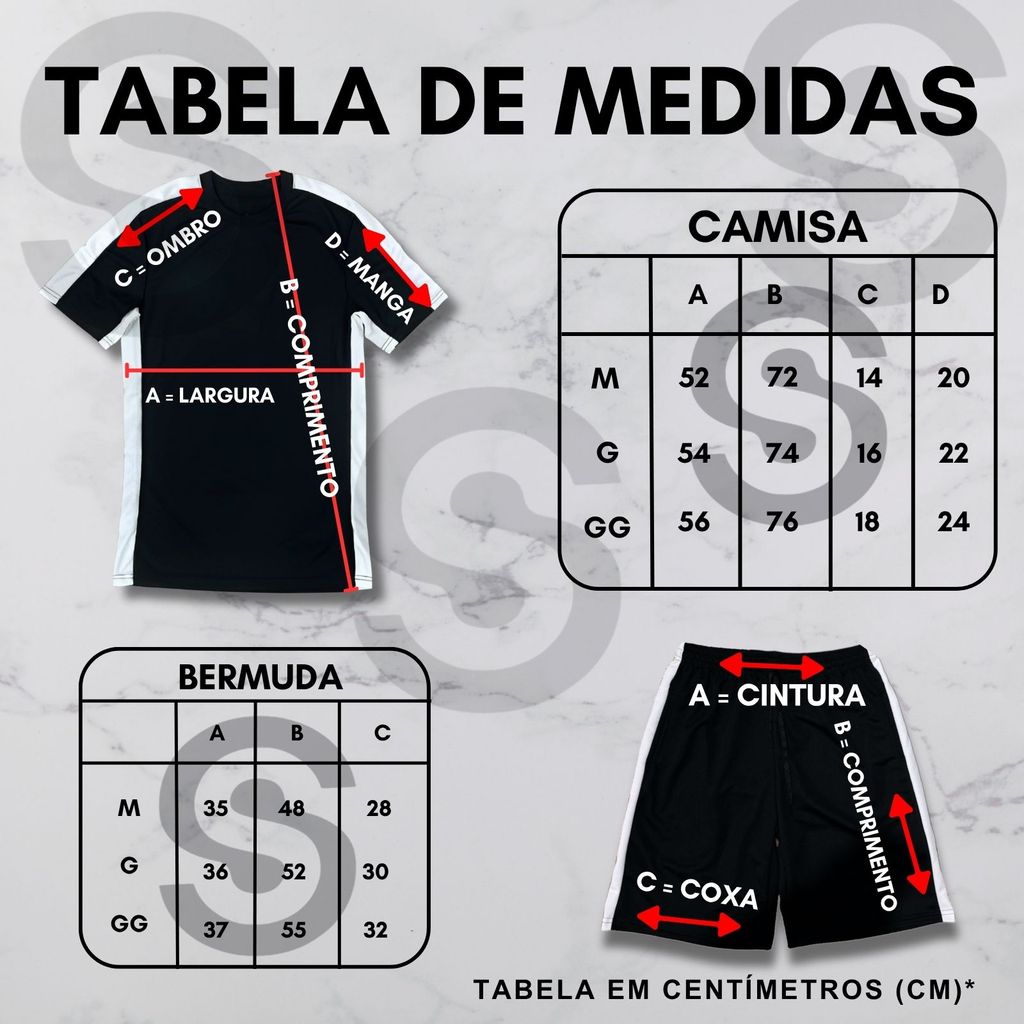Por que os Conjuntos Dry-Fit da LOJA 011 são os melhores? ✔️ Tecnologia Dry-Fit Colmeia : Desenvolvido para manter o seco e confortável o dia todo, o tecido absorve o suor e regula a temperatura corporal, tornando-se ideal para climas quentes e atividades físicas. ✔️ Estilo e Versatilidade : Nossas peças têm um design moderno e atemporal, perfeitas para uso casual. Seja para o lazer ou dia a dia, você estará bem vestido e pronto para qualquer situação. ✔️ Conforto Que Dura : Leve e confortável, o tecido garante liberdade de movimento e ajuste ideal. Além disso, as peças são projetadas para não amassar e manter seu visual impecável com o mínimo de esforço. ✔️ Qualidade Excepcional : Fabricação própria com atenção aos mínimos detalhes. As peças mantêm a aparência de novo por muito mais tempo e possuem secagem rápida, tornando-as práticas para o uso diário. ⚠️ Atenção: Verifique a tabela de medidas abaixo antes de finalizar a compra para garantir o tamanho ideal! Detalhes do Produto: Gênero : Masculino Indicado para : Uso Casual, Esporte e Lazer Material : Dry-Fit Colmeia de alta qualidade Características Especiais : Durabilidade superior, leveza e liberdade de movimento Estilo da Manga : Manga curta Tabela de Medidas: Camiseta: M: LARGURA = 52cm | COMPRIMENTO = 72cm | OMBRO = 14cm | MANGA = 20cm G: LARGURA = 54cm | COMPRIMENTO = 74cm | OMBRO = 16cm | MANGA = 22cm GG: LARGURA = 56cm | COMPRIMENTO = 76cm | OMBRO = 18cm | MANGA = 24cm Bermuda: M: CINTURA = 35cm | COMPRIMENTO = 48cm | COXA = 28cm G: CINTURA = 36cm | COMPRIMENTO = 52cm | COXA = 30cm GG: CINTURA = 37cm | COMPRIMENTO = 55cm | COXA = 32cm ENVIO IMEDIATO APÓS A CONFIRMAÇÃO DE PAGAMENTO! ✔️ Envio Rápido e Garantido : Priorizamos a eficiência e segurança na entrega, garantimos que seu pedido chegue até você no menor tempo possível. ✔️ Atenção Total ao Cliente : Sabemos como cada detalhe é importante para você. Por isso, estamos sempre disponíveis no chat para ajudar com dúvidas e garantir uma experiência de compra excelente. Qualquer dúvida estamos a disposição 🙏🏼 Boas compras! ♥ =D