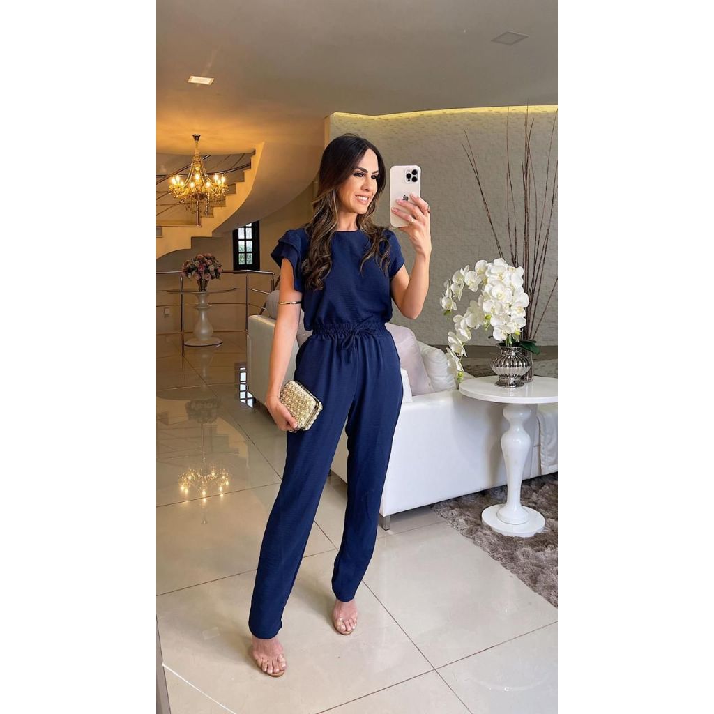 Conjunto Duna Feminino Manga Curta Com Babado Calça Com Elástico Elegante Pra Se Usar Em Diversas Ocasiões.