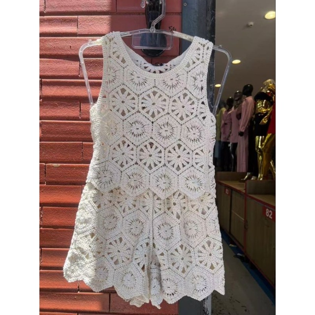 Conjunto em Crochê vista o luxo e o conforto,Elegância sem esforço .O tecido bem leve,fino,sofisticada e com caimento impecável,ela é o toque de glamour que toda mulher precisa!