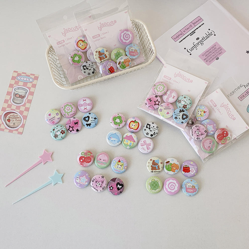 Conjunto Em Massa De Broche De Metal De 2.5 Cm , 6 Peças , Emblemas De Lapela , Conjuntos De Alfinetes Esmaltados Y2K De