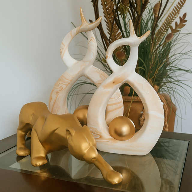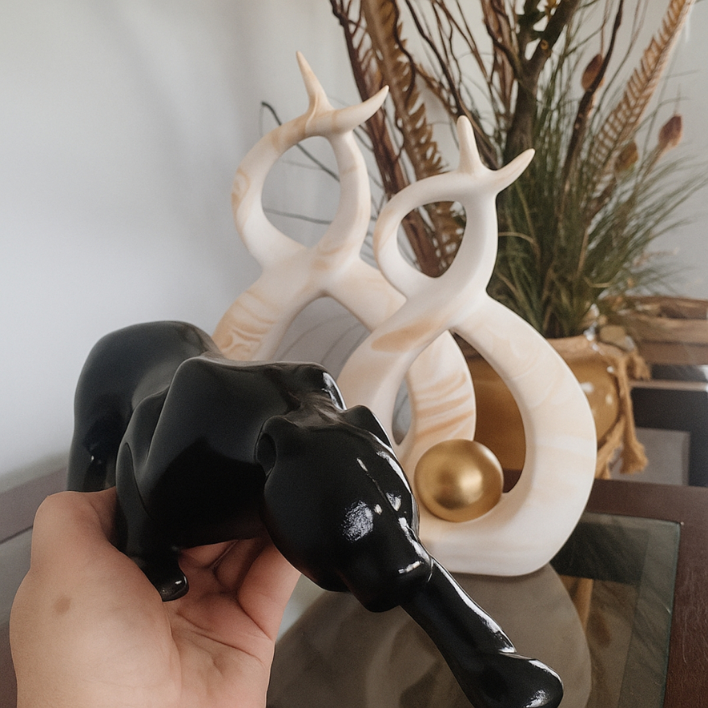 Conjunto Enfeite Dupla + Pantera Cerâmica Kit Decoração Luxo Sala Rack Estante