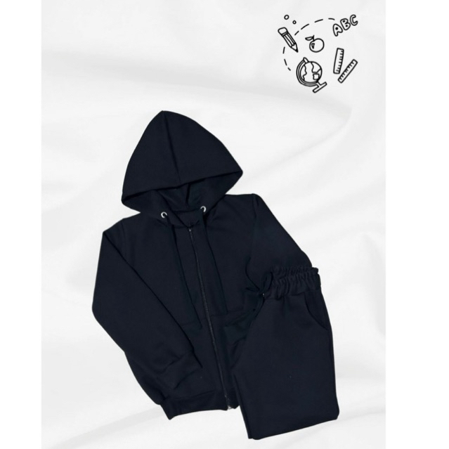 Conjunto Escolar Colegial Masculino Aberto com Zíper, bolso e capuz - Infantil e Infanto Juvenil - 2 ao 16 anos