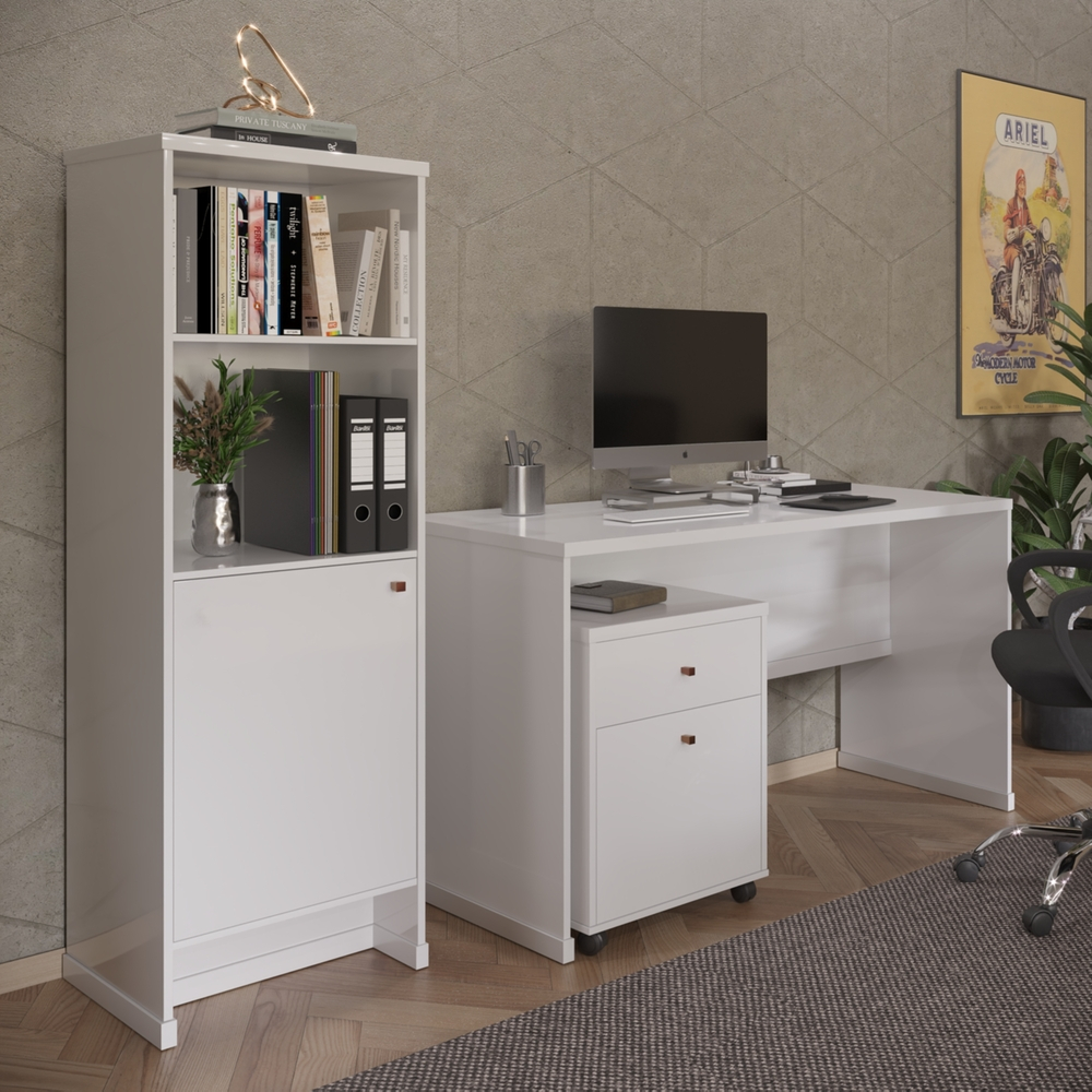Um escritório moderno precisa de móveis à sua altura! O Conjunto escritório Berlin é ideal para quem desejar inovar o ambiente de maneira simples e sofisticada. O Armário Berlin é ideal para deixar seu ambiente ainda mais moderno e prático. Sua modularidade permite criar diversos ambientes, desenvolvido em estrutura em MDP, tampo em 25 mm, possui 2 prateleiras superiores,1 prateleira inferior, pés ripados com sapatas plásticas e puxadores em ABS. O Gaveteiro irá complementar o seu ambiente residencial ou escritório com estilo e praticidade. Estruturado em MDP, possui 2 gavetas de corrediças telescópicas, sendo uma gaveta para pastas suspensas, e rodízios para melhor locomoção do produto. A Mesa Berlin é produzida em MDP, conta com tampo em 25mm, e pés ripado com sapatas plásticas, garantindo organização e versatilidade no seu ambiente. Especificações Técnicas da Mesa: - Material: MDP - Acabamento: Pintura Uv; - Número de Prateleiras: Não possui; - Número de Gavetas: Não possui; - Número de Portas: Não possui; - Produto Precisa de Montagem? Sim; - Garantia: 3 Meses; - Instruções de Cuidado: Limpar com pano levemente umedecido; - Medidas do Home (LarguraXProfundidadeXAltura): 136,5x54x75 cm. - Conteúdo da Embalagem: 01 Mesa - Entregue em: 1 Volume Especificações Técnicas do Armário: - Material:MDP - Acabamento: Pintura Uv ; - Número de Prateleiras: 3 Prateleiras; - Número de Gavetas: Não possui; - Número de Portas: 1 Porta; - Produto Precisa de Montagem? Sim; - Garantia: 3 Meses; - Instruções de Cuidado: Limpar com pano levemente umedecido; - Medidas do Home (LarguraXProfundidadeXAltura): 48x38x142 cm. - Conteúdo da Embalagem: 01 Armário - Entregue em: 1 Volume Especificações Técnicas do Gaveteiro: - Material:MDP - Acabamento: Pintura Uv; - Número de Prateleiras: Não possui; - Número de Gavetas: 2 Gavetas; - Número de Portas: Não possui; - Produto Precisa de Montagem? Sim; - Garantia: 3 Meses; - Instruções de Cuidado: Limpar com pano levemente umedecido; - Medidas do Home (LarguraXProfundidadeXAltura): 46x37,5x60cm. - Conteúdo da Embalagem: 01 Armário - Entregue em: 1 Volume Observações Importantes: Produto não devem ficar expostas diretamente ao sol, calor e umidades excessivas. Recomendações de Limpeza: Utilize somente pano seco ou levemente umedecido O produto pode sofrer alterações de tonalidade conforme o seu monitor Imagens meramente ilustrativas, produto não acompanha objetos de decoração e eletrônicos. Ao receber, verifique a embalagem. Se detectar violação na mesma, recuse o recebimento e nos contate. Não nos responsabilizamos, no ato da entrega, por subir escadas/elevadores. Nós não nos responsabilizamos pela montagem e por problemas causados pela montagem realizada por você ou montador contratado. Enfatizamos a recomendação aos nossos clientes de contratar um montador profissional. Eventualmente, se faltar qualquer peça ou acessório no produto, nos contate e enviaremos a peça/acessório sem custo adicional.