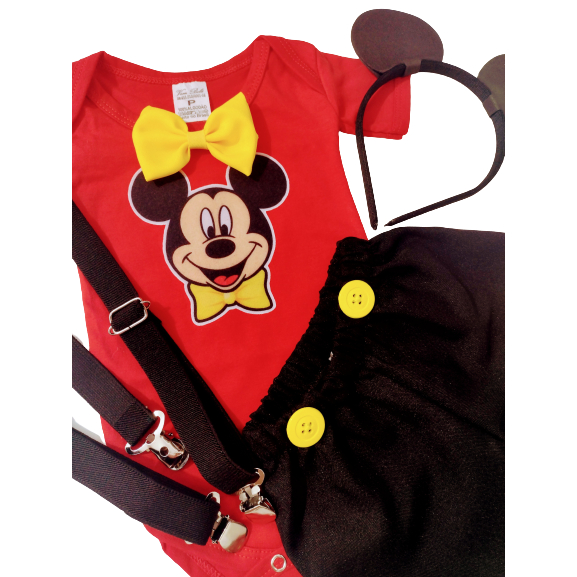 CONJUNTO FANTASIA MICKEY ROSTINHO MESVERSÁRIO FESTA DE ANIVERSÁRIO ORELHINHA DO MICKEY