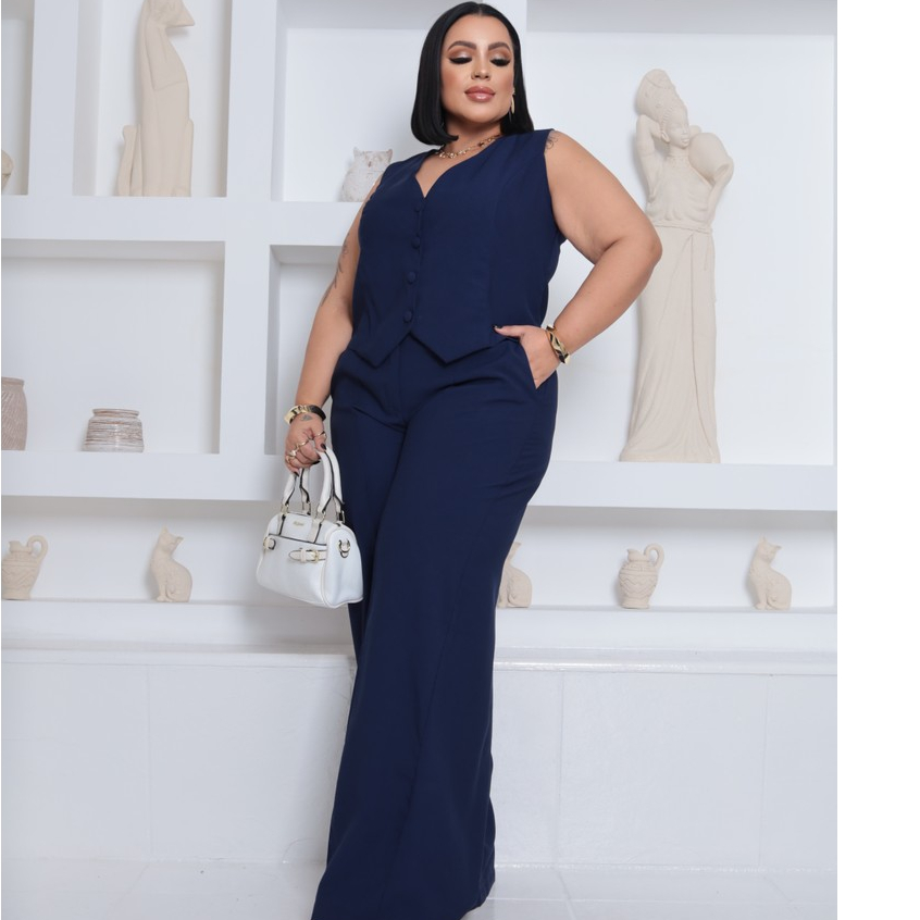 Conjunto Femenino Colete e Calça Elengante Plus Size Alfaiataria Marrant