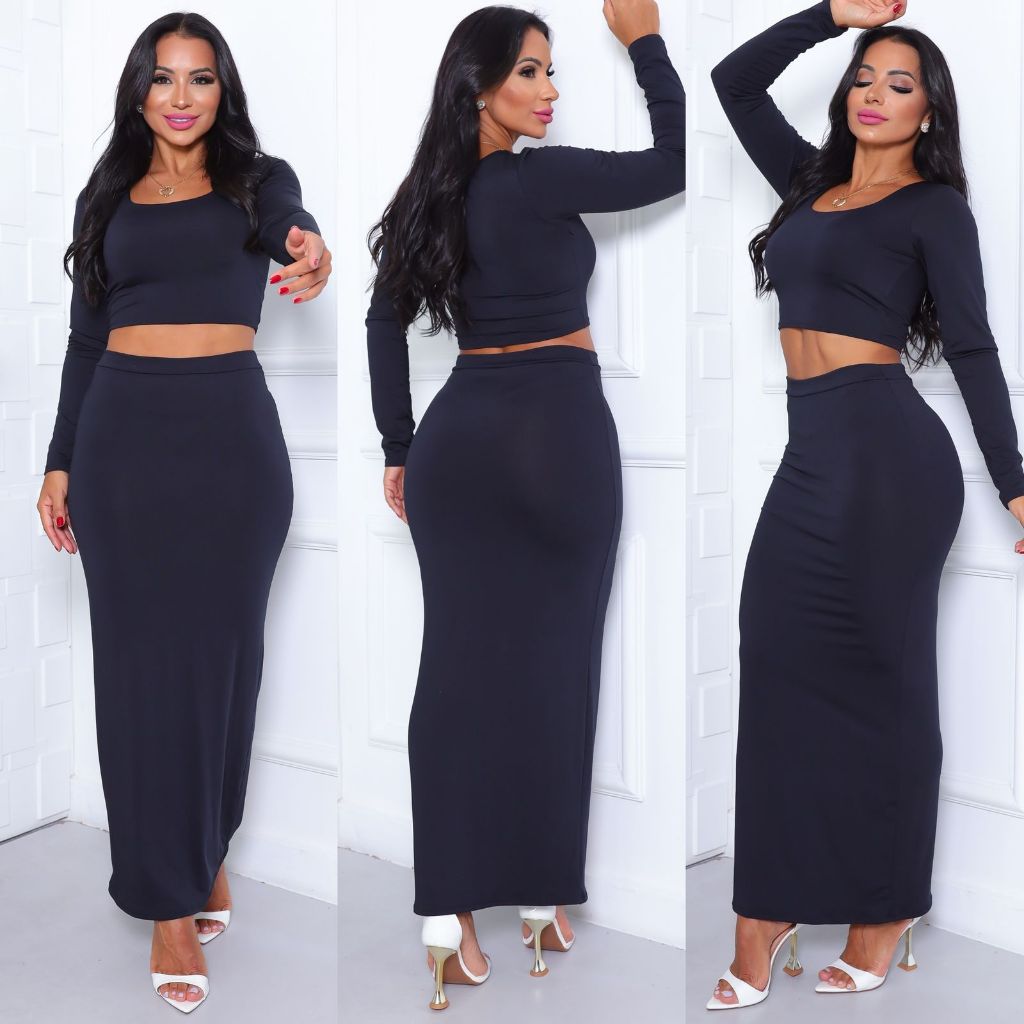 Conjunto Cropped com Saia Longa Midi – Suplex | Veste do 38 ao 42 Elegante, moderno e superconfortável! Esse conjunto é a escolha perfeita para quem busca estilo e praticidade no dia a dia ou em ocasiões especiais. O cropped tem decote quadrado, que valoriza o colo com um toque sofisticado. A saia longa, no comprimento midi, traz um caimento lindo que alonga a silhueta. Confeccionado em tecido suplex de alta qualidade, o conjunto se ajusta ao corpo sem marcar, vestindo perfeitamente do 38 ao 42 graças à sua elasticidade. Disponível em cores versáteis que combinam com tudo. Aposte nessa peça curinga e arrase em qualquer look!