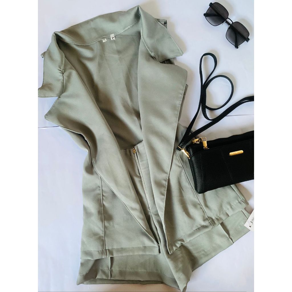 CONJUNTO FEMENINO SOCIAL BLAZER COM SHORT TENDENCIA,COLETE,TECIDO ALFAITARIA MARAVILHA E ELEGANTA