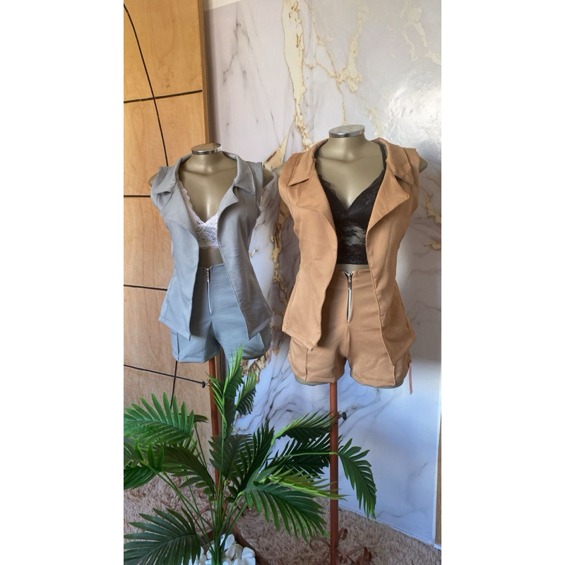 Conjunto Feminina Colete Com short Blazer Tecido Alfaitaria Maravilhosa Elegante