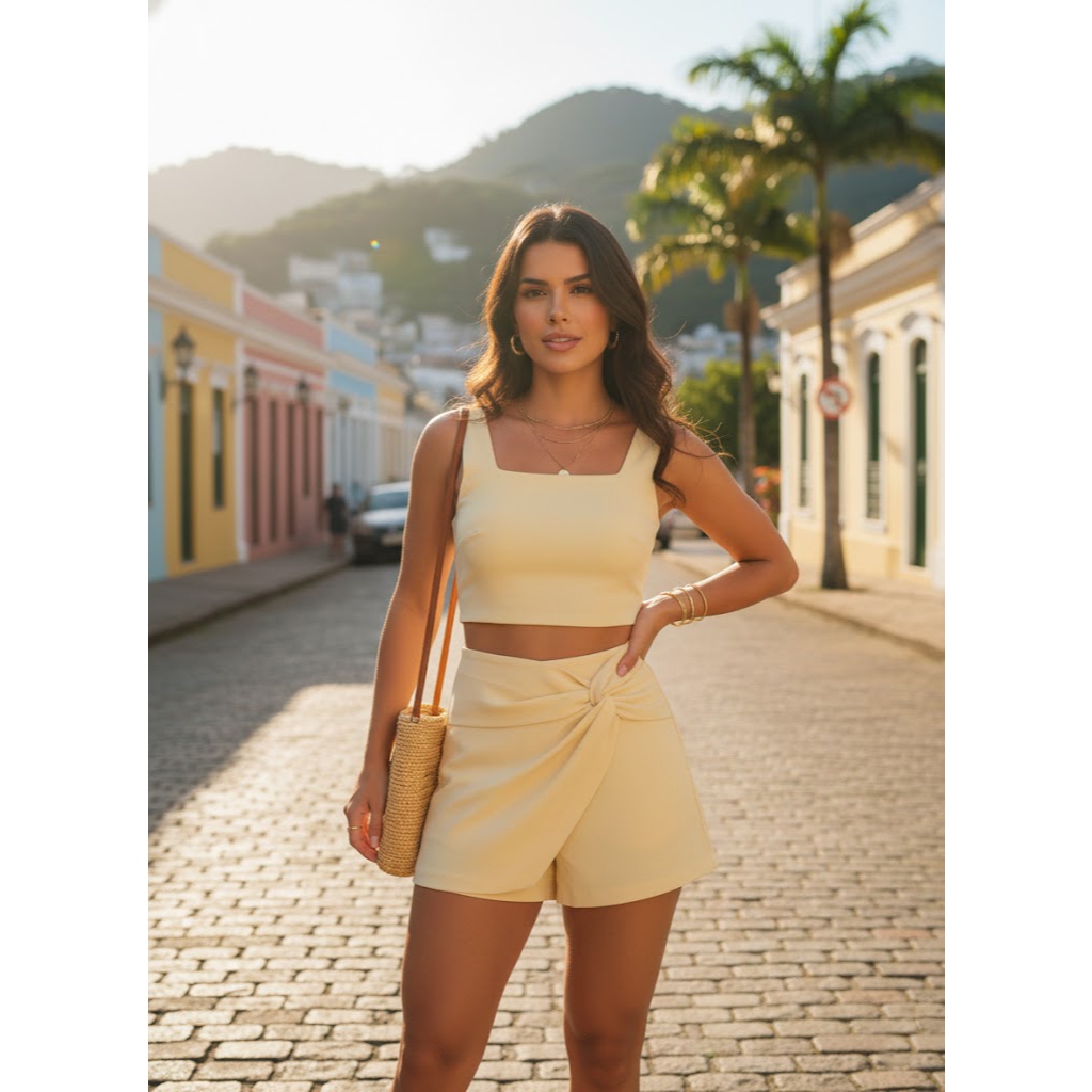 Composição do tecido: Tecido Alfaiataria Tamanho: Tamanho De cropped: Tam. P- Busto 94cm | Comprimento 43cm | Tam. M - Busto 96cm | Comprimento 44cm | Tam. G - Busto 98cm | Comprimento 45cm | Tam. GG - Busto 100cm | Comprimento 46cm | Obs.: tem elástico na costa Tamanho de Short saia Tam. P- Quadril 100cm | Comprimento 39cm |Cintura 86cm Tam. M - Quadril 102cm| Comprimento 40cm |Cintura 88cm Tam. G - Quadril 104cm | Comprimento 41cm |Cintura 90cm Tam. GG - Quadril 106cm | Comprimento 42cm |Cintura 92cm Obs.: é com zíper arás Pode haver diferença de 2cm para mais ou para menos nas medidas P veste 38 M veste 40 G veste 42 GG veste 44
