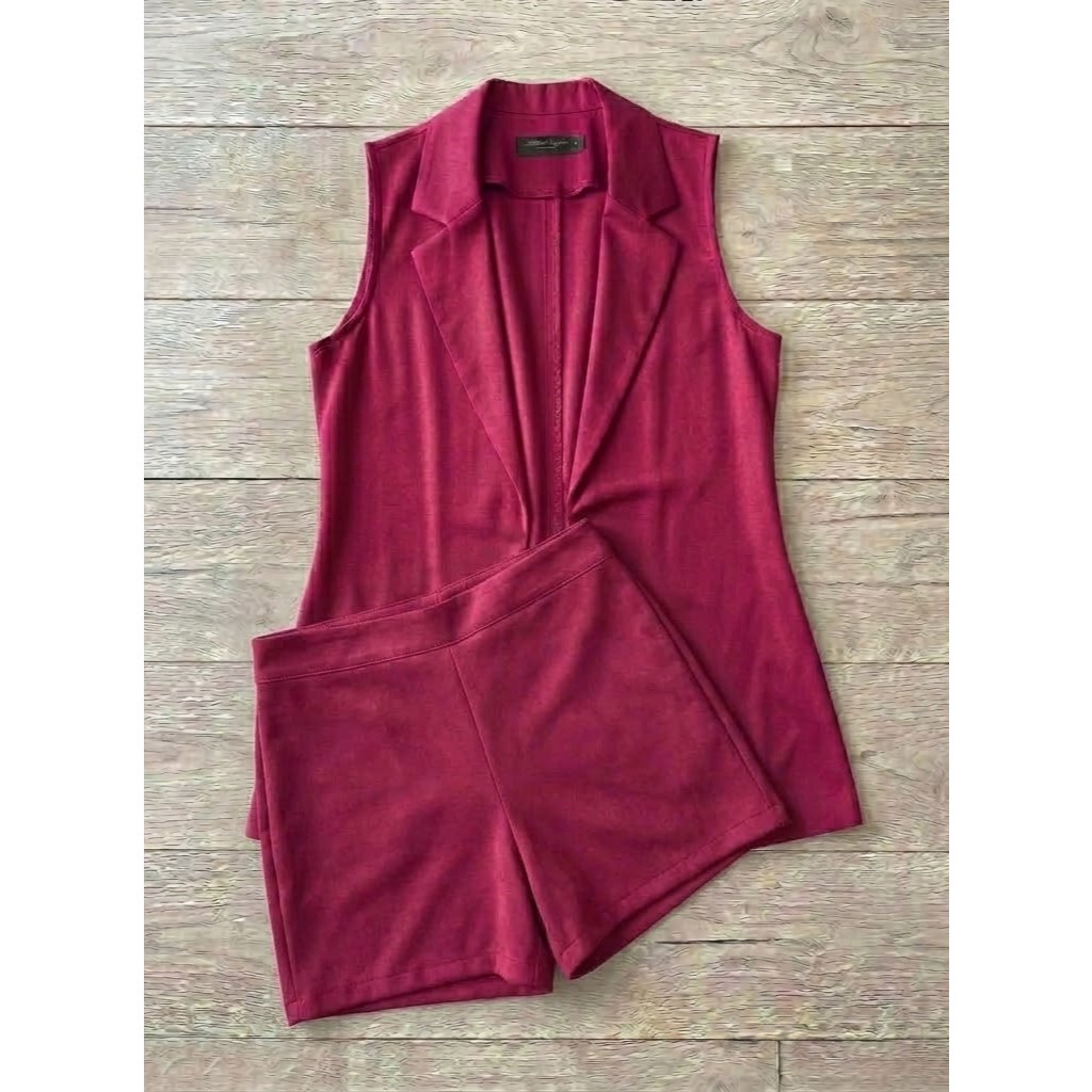 Conjunto Feminino Alfaiataria Colete Longo e Short Social Casual Moda Blogueira Verão