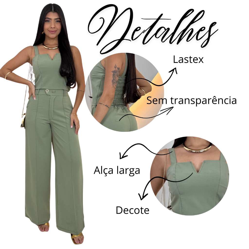 Conjunto Feminino Alfaiataria Elegante - Calça Pantalona e Blusa com Decote Diferenciado