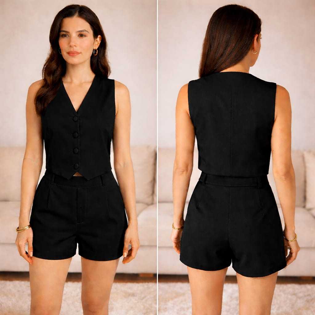 ✨ Conjunto Feminino Alfaiataria – Short + Colete | Elegante, Moderno e Confortável ✨ Conjunto sofisticado em alfaiataria premium, perfeito para looks elegantes e versáteis. Disponível nos tamanhos M, G e GG, com caimento impecável. Destaques do Produto: • Alfaiataria estruturada • Caimento perfeito • Short com bolsos frontais e zíper • Top/colete botões forrado • Conforto, estilo e modernidade Medidas – Short: • M (38): Cintura 76cm | Quadril 94cm | Comp. 40cm • G (40): Cintura 80cm | Quadril 96cm | Comp. 42cm • GG (42): Cintura 84cm | Quadril 98cm | Comp. 44cm Medidas – Colete: • M: Busto 88cm | Comp. 42cm • G: Busto 90cm | Comp. 44cm • GG: Busto 92cm | Comp. 46cm Vantagens: • Elegância imediata • Modelo versátil para dia e noite • Combina com salto, tênis ou sandálias • Conjunto moderno, funcional e atemporal 🛒 Envio Rápido: pedidos até 11h são enviados no mesmo dia. 🏭 Somos Fabricantes!