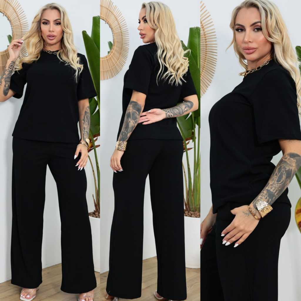 Conjunto Feminino Blusa Oversized Y Calça Pantalona Tamanho M G