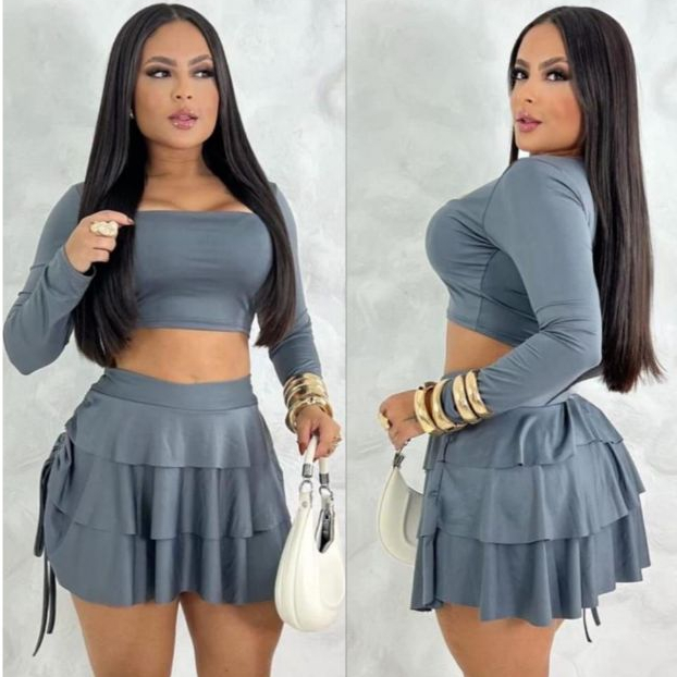 O Conjunto Feminino Branco Cropped + Saia Babado é a escolha perfeita para quem busca estilo, elegância e conforto em um só look. Com design moderno e sofisticado, ele valoriza a silhueta e é tendência forte da moda feminina 2026. O cropped possui manga longa e modelagem ajustada ao corpo, trazendo um visual elegante e sensual na medida certa. A saia curta com babados adiciona movimento e charme ao look, deixando a produção ainda mais feminina e estilosa. Ideal para diversas ocasiões como festas, jantares, passeios e looks para redes sociais