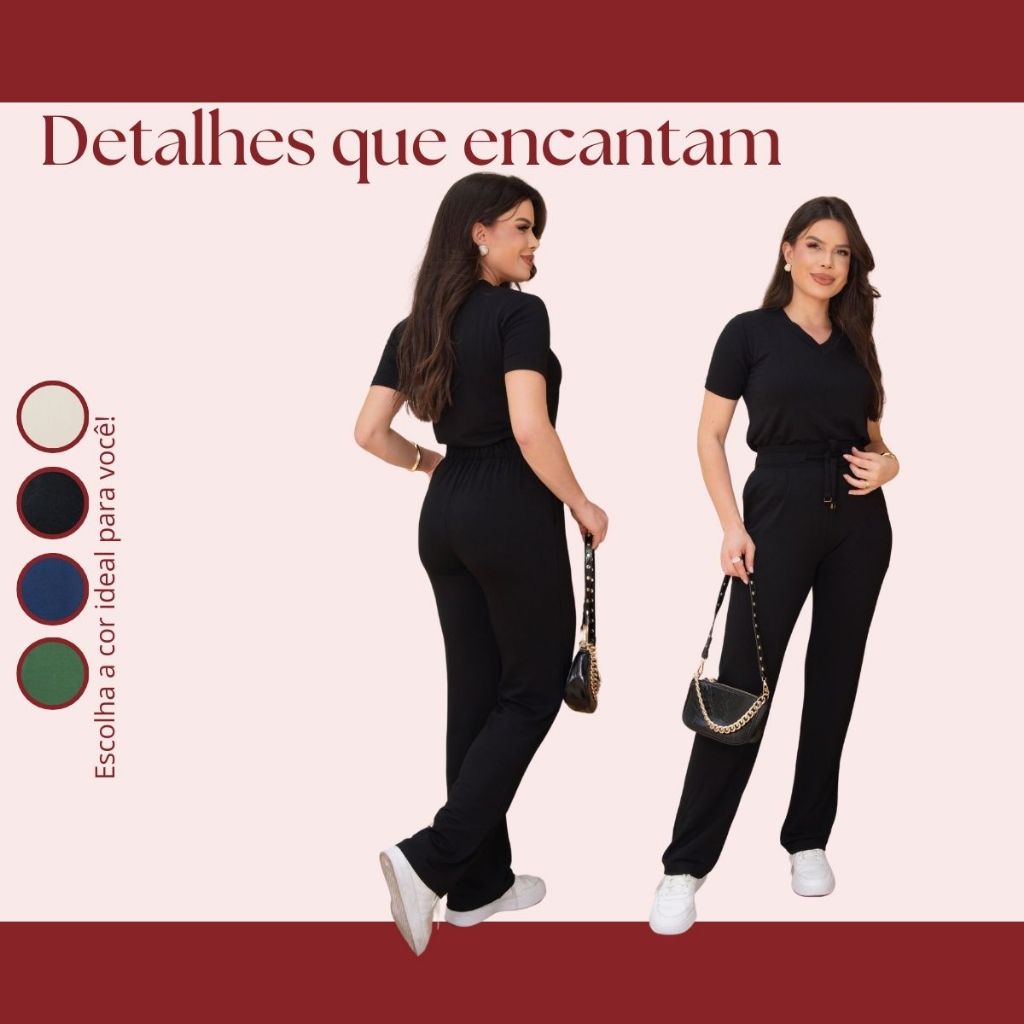 O look perfeito para mulheres que amam elegância com leveza. Confeccionado em moletinho premium de alta qualidade, este conjunto traz blusa de manga curta com gola V e calça de cós elástico, oferecendo caimento impecável e toque suave. Seu design foi pensado para criar um visual casual chic, ideal para quem quer se sentir bem-vestida sem abrir mão do conforto. Perfeito para momentos de lazer, trabalho, viagens ou encontros especiais, ele se adapta facilmente a diferentes ocasiões — basta mudar o calçado ou os acessórios para transformar o look. Tamanhos disponíveis: M veste 38 ao 42 G veste 42 ao 44 GG veste 44 ao 46 Sinta-se elegante, confiante e confortável com o conjunto que traduz versatilidade e estilo em cada detalhe.