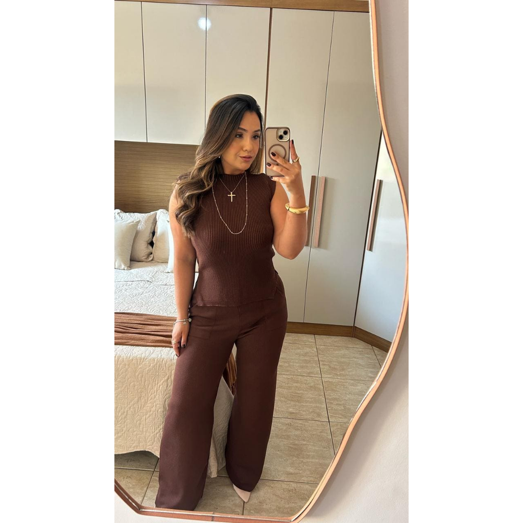 Conjunto Feminino Calça Wide Leg com Colete Tricot Modal Aero Look lançamento Verão 2026