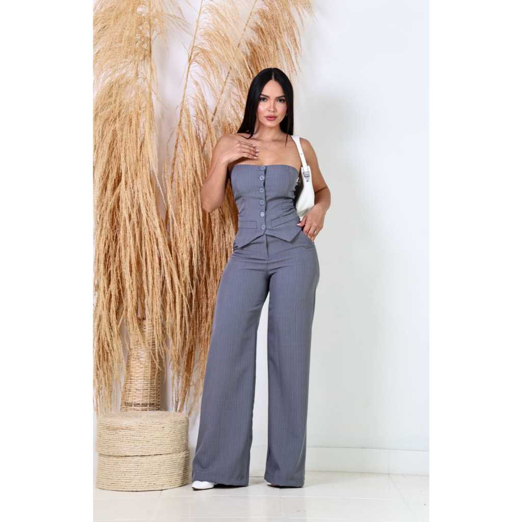 Conjunto Feminino com Botões Frontais O equilíbrio perfeito entre sofisticação e modernidade. Este conjunto em Luis twill apresenta uma modelagem impecável, confeccionada em tecido encorpado com leve elasticidade, que garante conforto e caimento refinado. O corset tomara que caia valoriza o colo e a silhueta feminina, com fechamento frontal por botões e recortes estratégicos que acentuam a cintura, proporcionando um visual elegante e marcante. A calça possui corte reto e cintura alta, alongando a silhueta e conferindo um toque de poder e elegância ao look. Versátil e atemporal, é a escolha perfeita para eventos sociais, jantares, coquetéis ou produções noturnas que pedem um visual sofisticado e impactante. Combine com acessórios minimalistas e salto alto para um resultado ainda mais glamouroso. somos fabricantes da moda feminina oferecemos o envio imediato !!!!!!!!!!! BOAS COMPRAS !!!!!!!!! DESCRIÇÃO DA BLUSA TOMARA QUE CAIA P * BUSTO 92cm (medido com elastex esticado) * ALTURA DO ELASTEX 22cm * ALTURA DA FRENTE LOCAL DOS BOTÕES 30 cm * 6 BOTÕES FUNCIONAIS * BOLSO FAKE * ELASTEX NAS COSTAS M * BUSTO 96cm (medido com elastex esticado) * ALTURA DO ELASTEX 22cm * ALTURA DA FRENTE LOCAL DOS BOTÕES 30,5 cm * 6 BOTÕES FUNCIONAIS * BOLSO FAKE * ELASTEX NAS COSTAS G * BUSTO 100cm (medido com elastex esticado) * ALTURA DO ELASTEX 22cm * ALTURA DA FRENTE LOCAL DOS BOTÕES 31 cm * 6 BOTÕES FUNCIONAIS * BOLSO FAKE * ELASTEX NAS COSTAS DESCRIÇÃO DA CALÇA PANTALONA * possui dois bolsos facas nas laterais * fechamento de ziper é botão na frente P cintura 76cm quadril 94cm comprimento 112cm M cintura 80cm quadril 98cm comprimento 114cm G cintura 84cm quadril 102cm comprimento 115cm