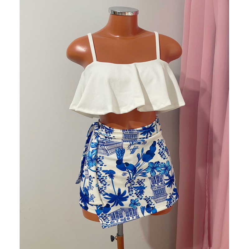 CONJUNTO FEMININO 🩵🤎🖤 • Cropped em crepe malha estica • Short Saia em Neoprene (estica) Estampas Exclusivas de Verão Tamanhos: PP serve 34/36 P serve 38 M serve 40 G serve 42