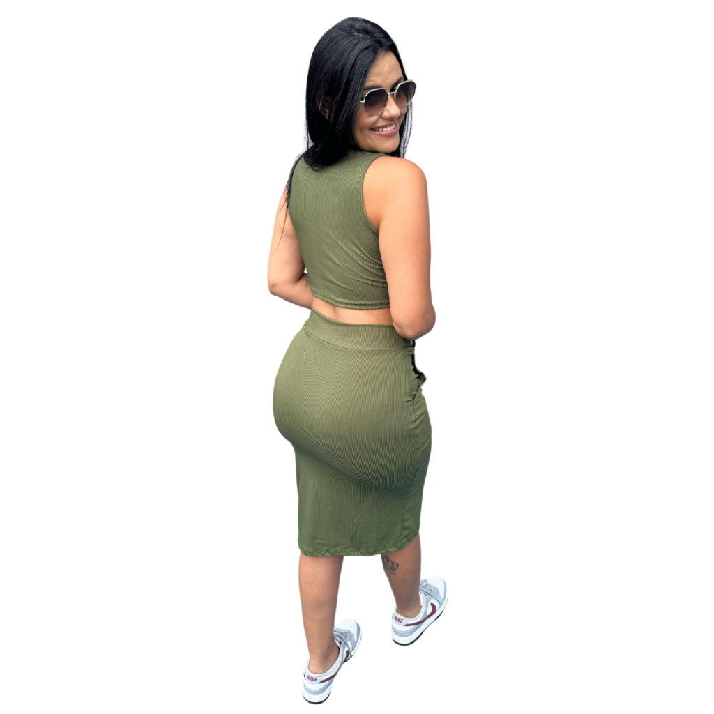Conjunto Feminino Cropped Regata, Saia Midi versátil para produções casuais
