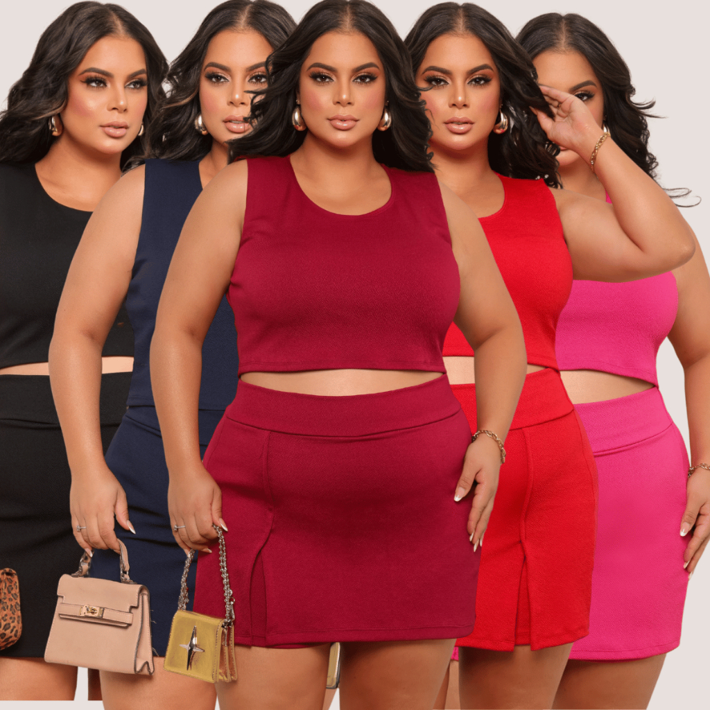 Conjunto Feminino Cropped + Short Saia - Conjuntinho Plus Curve
