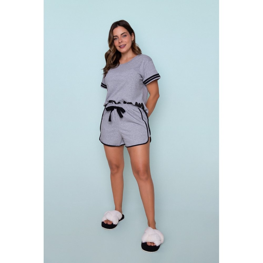 Conjunto Feminino Curto 100% Algodão Mescla Black Verão