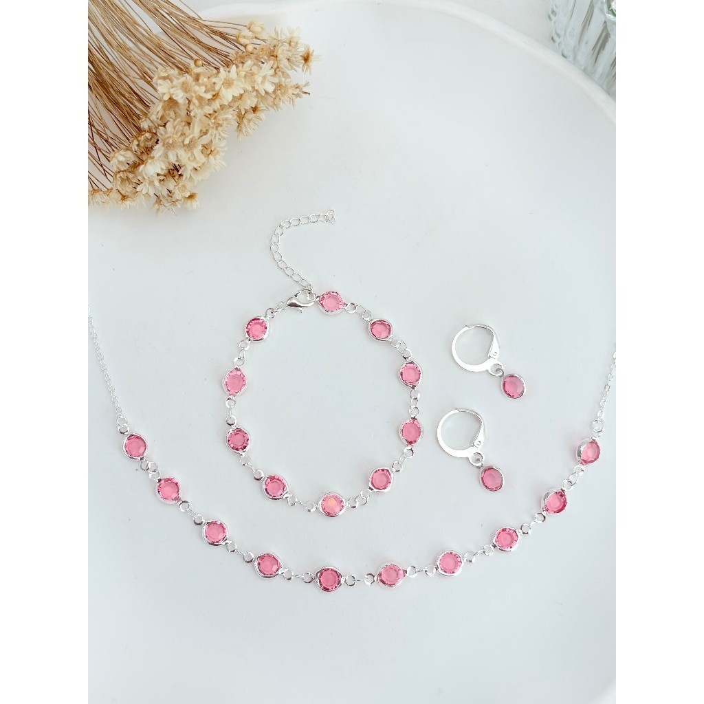 Conjunto feminino de colar redondo multicolorido + pulseira e brincos banhado e prata 925