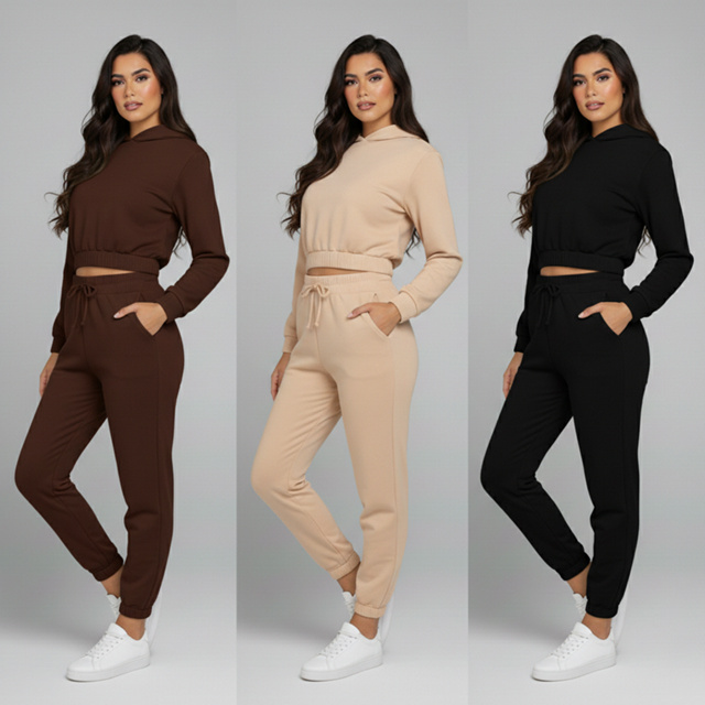 Conjunto Feminino de Moletom Calça Jogger e Cropped Com Capuz aparece na subcategoria Conjuntos Individuais (de Roupas Femininas) na Shopee Brasil por R$ 99,90 (14% de desconto sobre o preço original de R$ 116,16). Avaliado em 4.7/5 pelos compradores e 305 unidades vendidas, este produto se destaca pelo excelente custo-benefício.