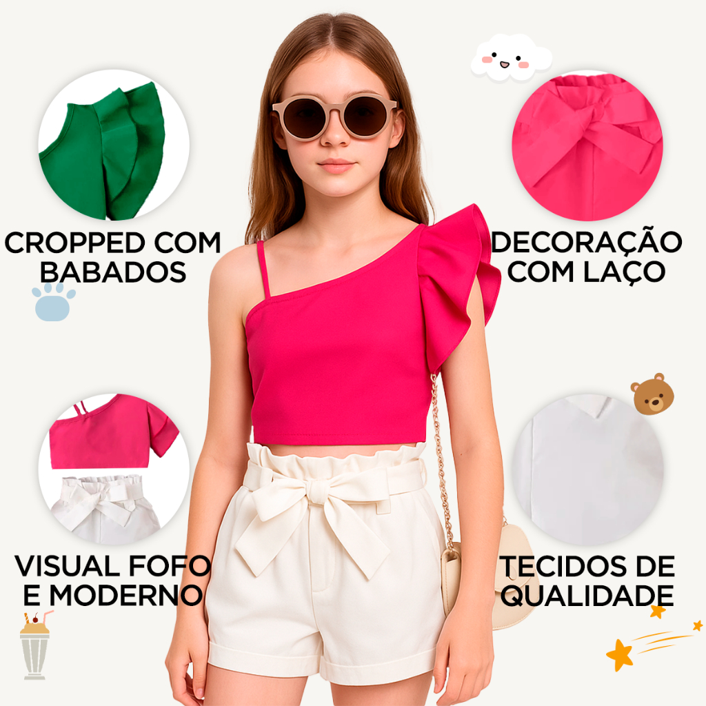 | Conjunto Infantil Juvenil Menina Short Saia e Cropped tecido Linh... | R$ 59,99 | 34% | 4.9/5 | 243 |