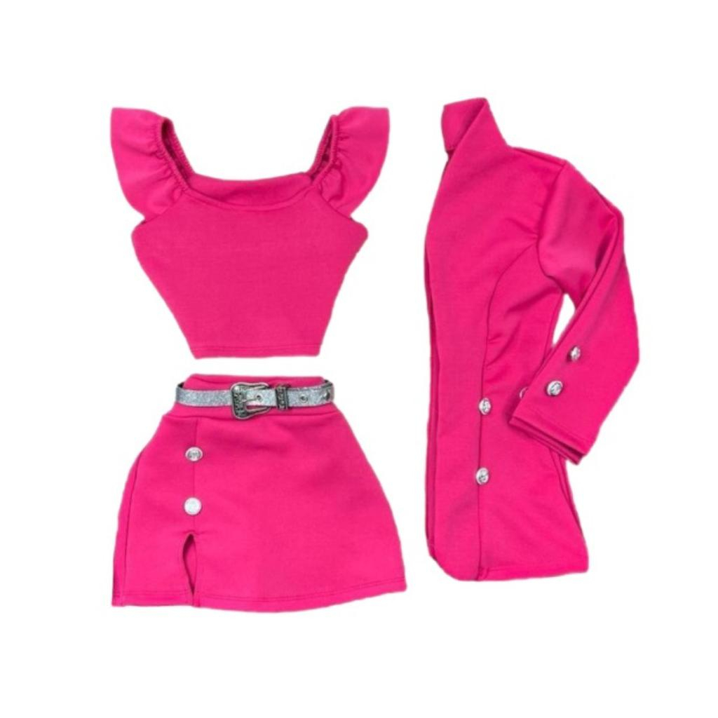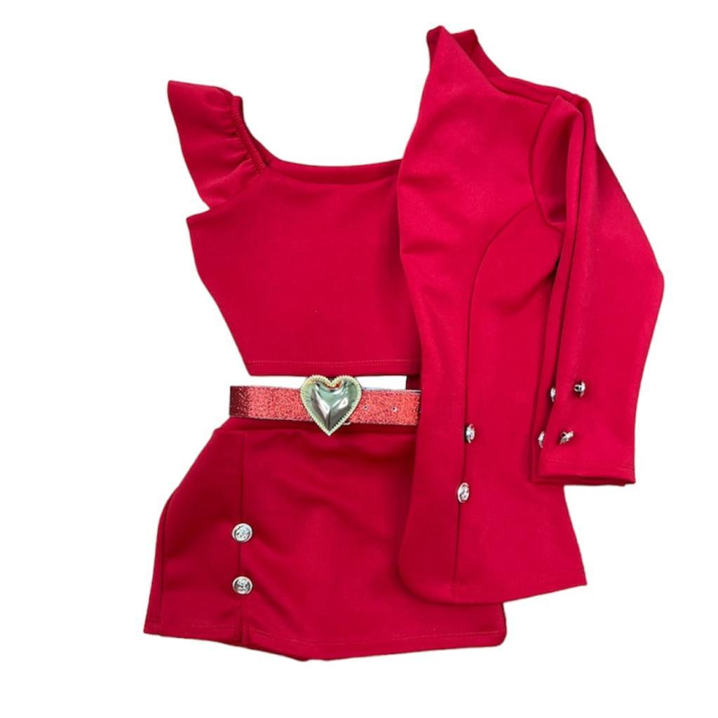 Conjunto Feminino Infantil Blazer Cropped Short Saia Meninas