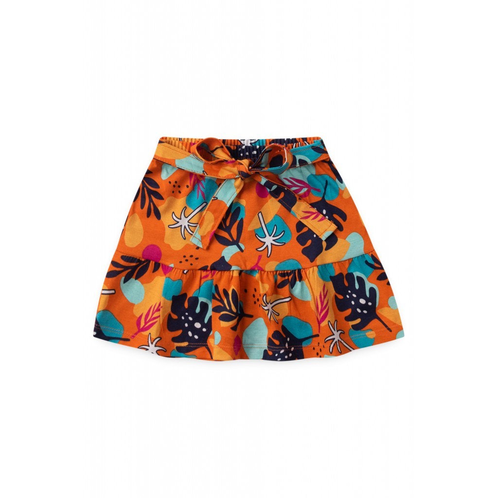 Conjunto Feminino Infantil Verão Pássaros Laranja