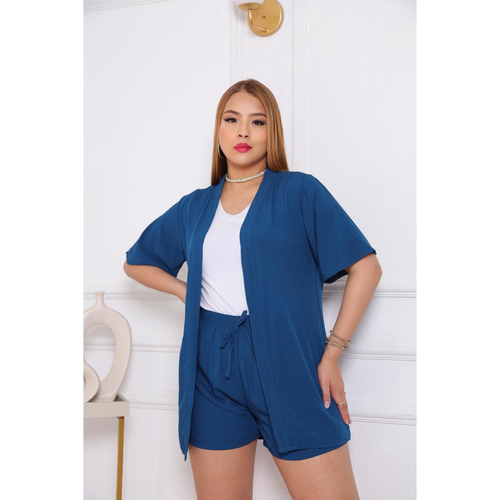 conjunto feminino kimono e short tecido viscolinho moda de verão