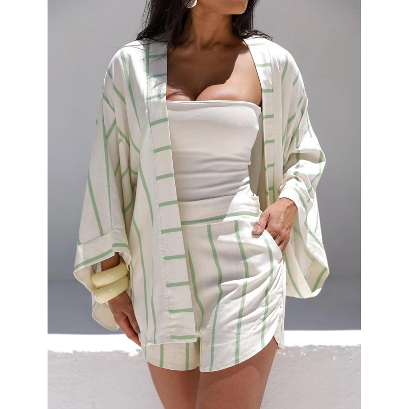 Conjunto Feminino Kimono Linho soltinho chic e estiloso cor neutra