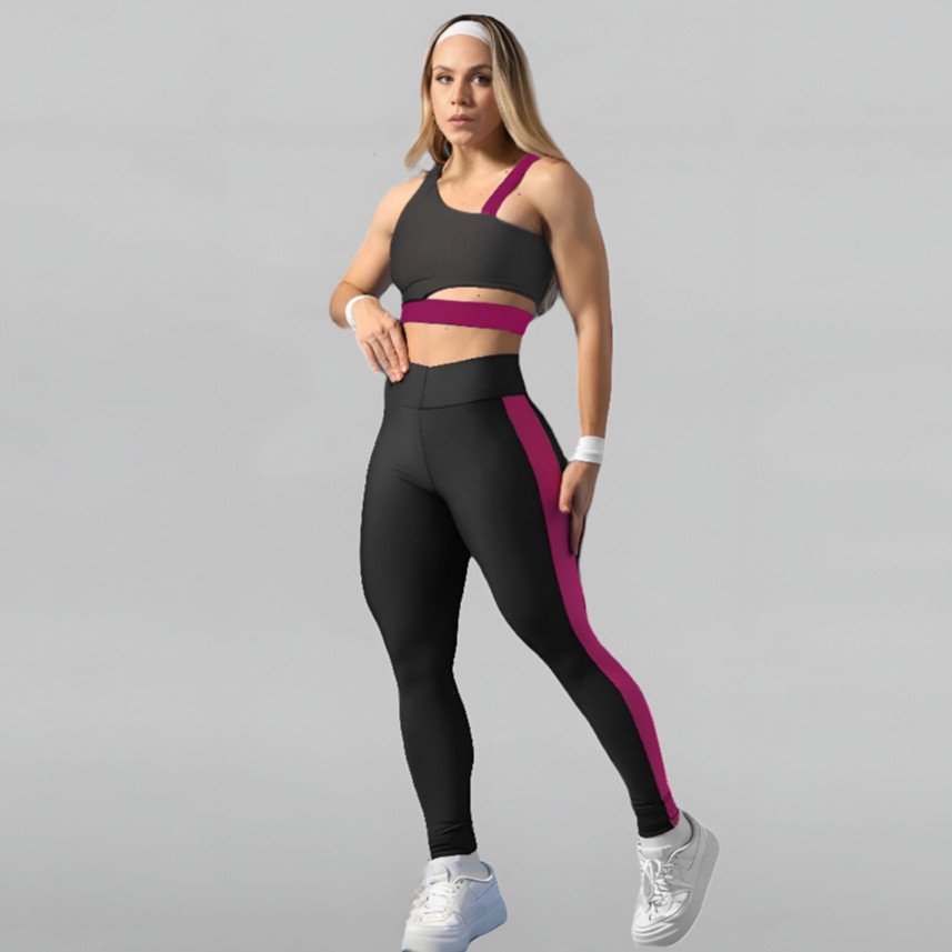 Conjunto Feminino Kit Academia Top E Calça Legging Bicolor Suplex.