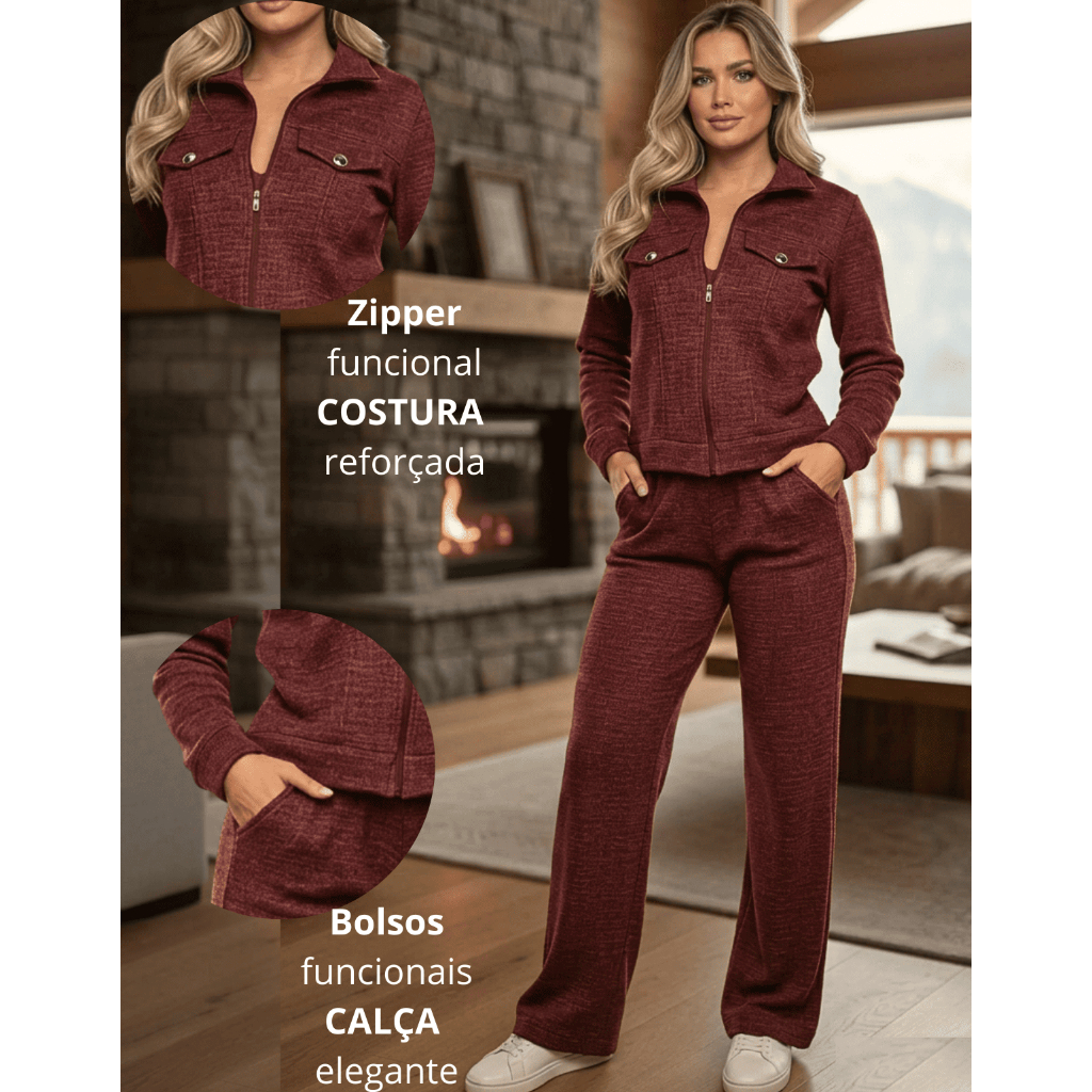 Lançamento de Outono/ Inverno. Conjunto Feminino AnaRuga Canelado Premium - Jaqueta Zíper e Calça Pantalona. Não perca esse Multiplicador de Looks. Nosso conjunto em Tecido AnaRuga Canelado é a escolha número 1 para a mulher moderna que busca praticidade sem abrir mão do estilo "Blogueira Chic AEROLOOK". Com um toque macio e alta elasticidade, ele modela o corpo com perfeição. O Tecido Canelado possui textura exclusiva que NÃO PRECISA PASSAR. Caimento Perfeito: A calça possui corte reto/wide que alonga a silhueta e a jaqueta com zíper permite várias combinações. Use com tênis para um look casual ou com salto para um evento à noite. Conforto Térmico: Ideal para meia-estação e dias frescos. ESPECIFICAÇÕES TÉCNICAS Material: Malha AnaRuga Premium (Poliéster com Elastano). Cores: Marsala e Marrom (Cores tendência Outono/Inverno). Tamanho: GUIA DE TAMANHOS (Medidas sem esticar a peça. Tamanho M (Veste 40) Busto: 92 - 96 cm Cintura: 74 - 78 cm Quadril: 98 - 102 cm Tamanho G (Veste 42) Busto: 98 - 102 cm Cintura: 80 - 84 cm Quadril: 104 - 108 cm Tamanho GG (Veste 44) Busto: 104 - 108 cm Cintura: 86 - 90 cm Quadril: 110 - 114 cm GARANTA O SEU AGORA! Estoque Limitado! Por ser um tecido de alta demanda e fabricação exclusiva, nossas unidades esgotam rapidamente. Não perca a oportunidade de ter esse conjunto curinga no seu guarda-roupa.
