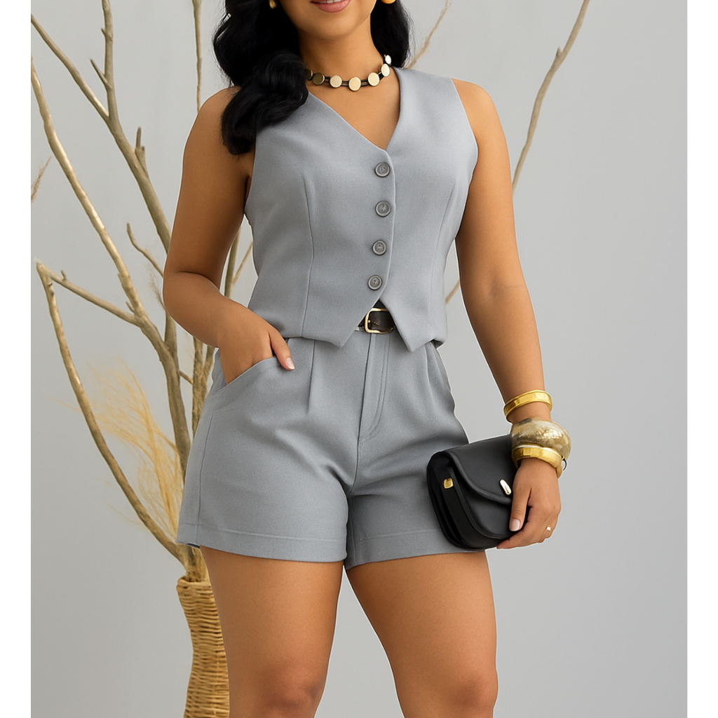 CONJUNTO FEMININO LUXO COLETE + SHORTS TENDENCIA 2026 SUPER ELEGANTE E VERSATIL
