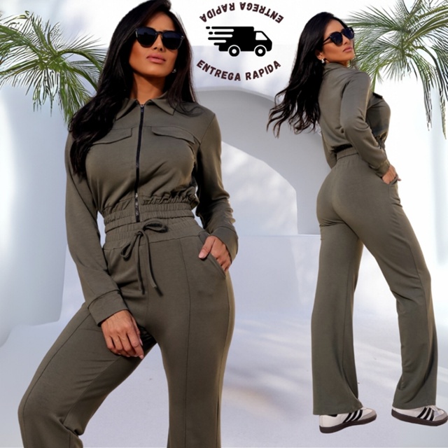 Conjunto Feminino Manga Longa junto com calça pantalona em viscolycra e confortável