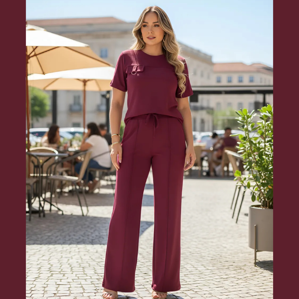 Conjunto Feminino Moletinho de Viscose Premium Calça e Blusa