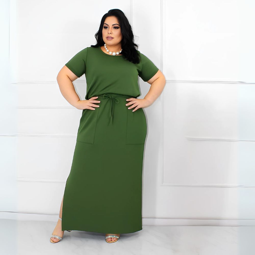 ___________Conjunto Feminino Saia Com Fenda Lateral blusa Manga Curta __________ > Confeccionada em moletinho > Ideal para completar seu visual com elegância e conforto. > Modelagem Saia Com Fenda Versátil > blusa Manga Curta e comprimento regular. Informações Complementares: - Composição: 97% viscose 3% Elastano TAMANHO G veste 46 GG veste 48 📏 Medidas aproximadas: 👚 BLUSA Comprimento: G 59 | GG 60 Busto: G 110 | GG 115 SAIA Quadril: G 115 cm | GG 125 cm Cintura com elástico: G 66–110 cm | GG 68–118 cm Comprimento: 95 cm em ambos os tamanhos. - Acabamento premium - Modelagem acinturada - Não marca e NÃO FICA TRANSPARENTE