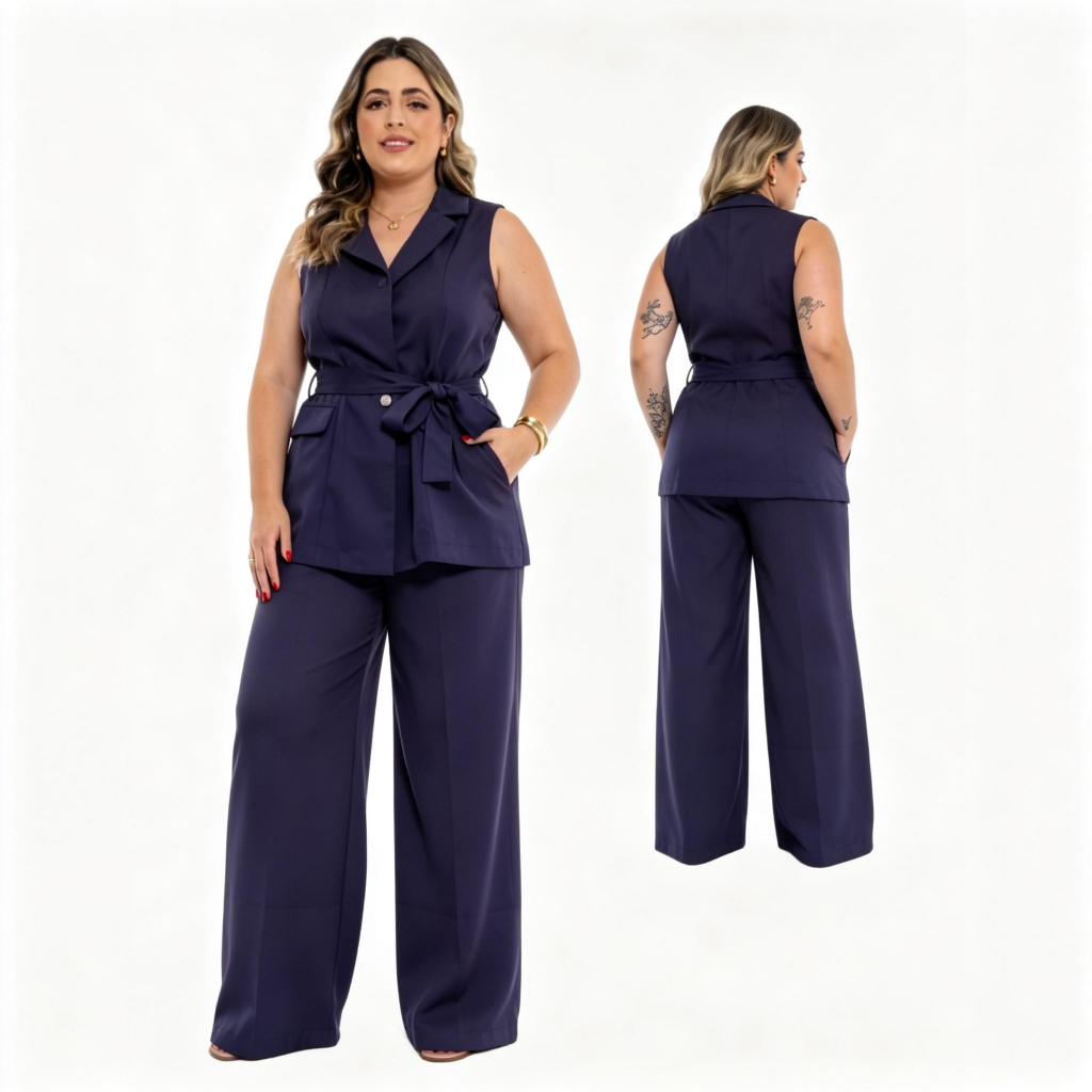 Conjunto Feminino Plus Size Colete Com Faixa E Calca Com Elastino Cos Pantalona CONPL-049