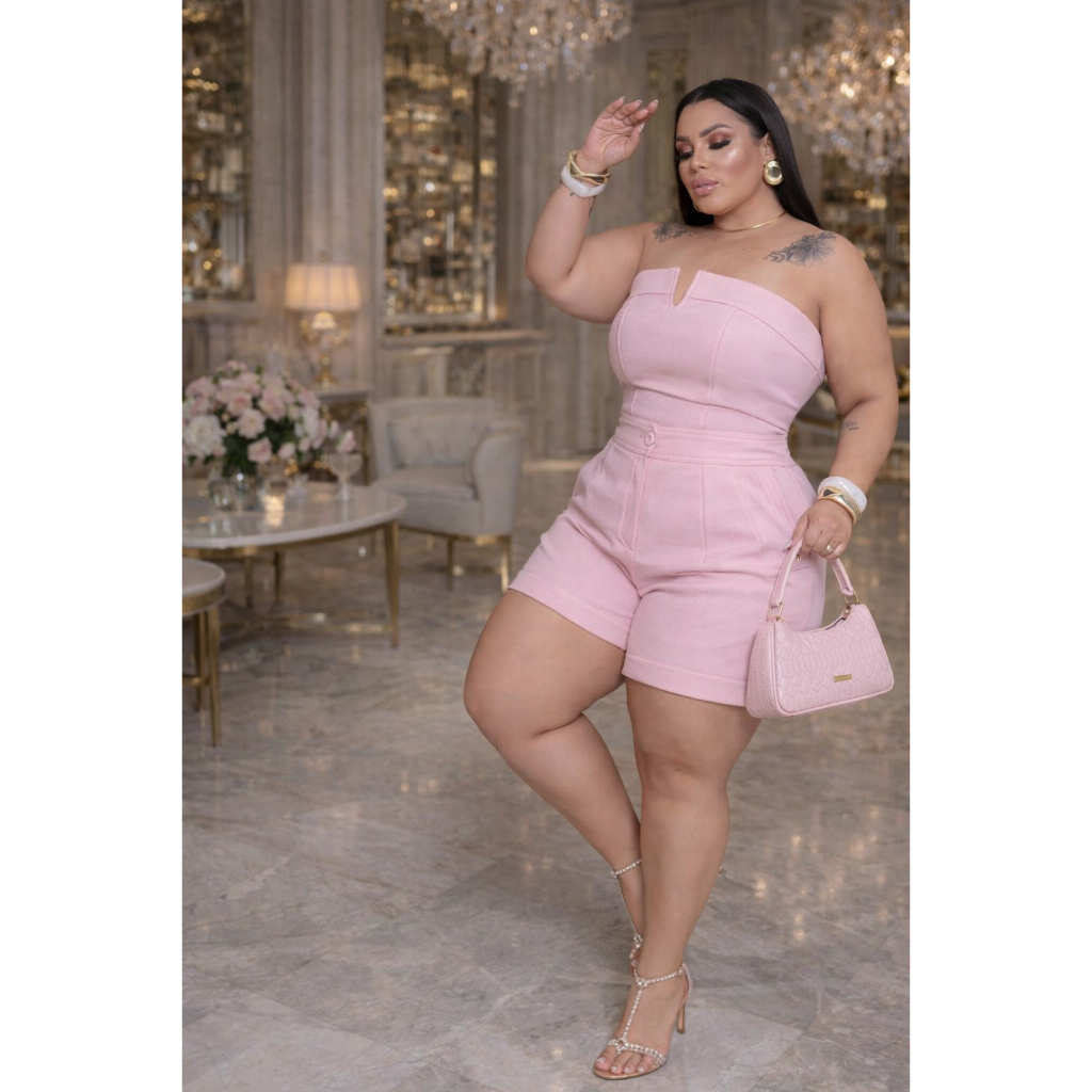 O Conjunto Feminino Plus Size Rosa Bebê Elegante é perfeito para mulheres que buscam sofisticação, estilo e conforto em um único look. Com design moderno e acabamento delicado, o conjunto é composto por cropped estruturado tomara que caia e short de alfaiataria, criando um visual elegante e feminino. A cor rosa bebê traz delicadeza e charme, sendo ideal para festas, eventos, passeios, jantares e ocasiões especiais. A modelagem foi desenvolvida especialmente para valorizar o corpo plus size, proporcionando caimento confortável e elegante. O cropped possui estrutura que valoriza o busto, enquanto o short oferece ajuste confortável e sofisticado, formando um conjunto moderno e muito estiloso. Destaques do produto • Conjunto feminino elegante • Modelagem plus size que valoriza o corpo • Cropped tomara que caia estruturado • Short de alfaiataria confortável • Cor rosa bebê azul bebe e branco off delicada e sofisticada • Ideal para festas, eventos e looks elegantes Medidas Aproximadas (Plus Size) Tamanho GG (48/50) • Busto: 108 – 116 cm • Cintura: 92 – 100 cm • Quadril: 116 – 124 cm Tamanho G1 (52/54) • Busto: 116 – 124 cm • Cintura: 100 – 108 cm • Quadril: 124 – 132 cm MAIS INFORMACÃO ESTAMOS A DISPOSIÇÃO UMA MARAVILHORA COMPRA