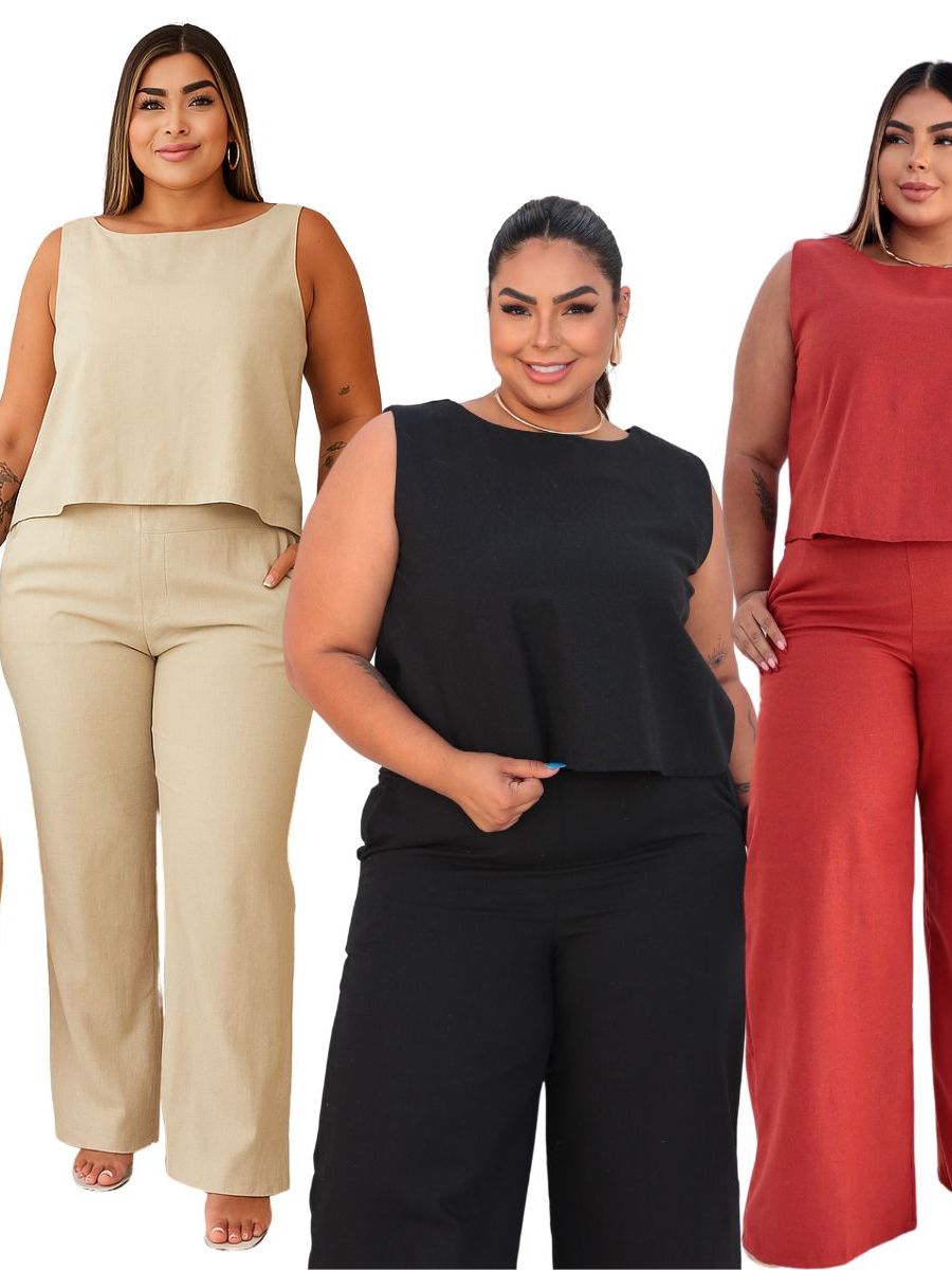 Conjunto Feminino Plus Size em Linho – Blusa e Calça Elegante Renove seu guarda-roupa com este conjunto incrível feito em linho de alta qualidade! Composto por uma blusa de corte reto e calça pantalona, esse look une conforto, sofisticação e estilo. O tecido leve e estruturado proporciona caimento impecável e frescor para os dias mais quentes. Ideal para ocasiões casuais ou produções mais elegantes com os acessórios certos, esse conjunto é versátil e valoriza a silhueta plus size com elegância e modernidade. Destaques: Tecido em linho misto, leve e confortável Modelagem pensada para o corpo plus size. A blusa tem modelagem reta e solta, com caimento confortável. Calça com cintura alta e modelagem ampla. Ideal para eventos, trabalho ou passeio Disponível nos tamanhos: G1, G2, G3 e G4. Com diversos tons disponíveis em nossa loja, para os mais variados gostos. BOAS COMPRAS!
