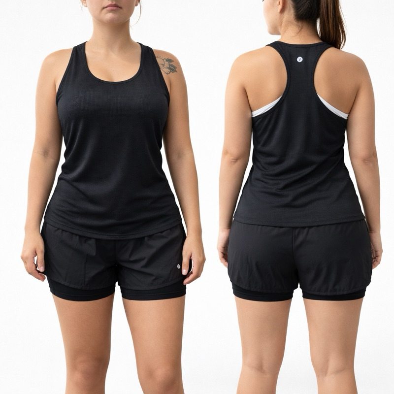 CONJUNTO FEMININO DRY FIT PREMIUM – REGATA + BERMUDA DUPLA Performance, conforto e estilo para seus treinos. A regata tapa bumbum tem caimento alongado e tecido respirável. A bermuda 2 em 1 une a camada externa leve com a compressão interna, garantindo firmeza e segurança nos movimentos. Por que você vai amar • Secagem rápida e toque gelado • Tecido leve e respirável (dry fit) • Modelagem confortável: regata alongada + bermuda com compressão • Ideal para academia, corrida, caminhada e dia a dia • Visual minimalista e moderno Detalhes da Regata • Modelagem: tapa bumbum/alongada • Tecido: dry fit (100% poliéster) • Respirável, leve, não amassa, seca rápido Detalhes da Bermuda Dupla • 2 em 1: short externo leve + short interno de compressão • Cós com elástico e cordão • Bolsos laterais (externo) • Ótima sustentação sem apertar Conteúdo do pacote • 1x Regata Dry Fit Feminina (preta) • 1x Bermuda Dupla de Compressão Feminina (preta) Tamanhos e Medidas Considere variação de ±2 cm; escolha sempre pelo corpo e não só pelo número. Regata (largura x comprimento) • P: 43 x 68 cm • M: 46 x 70 cm • G: 49 x 72 cm • GG: 52 x 74 cm Bermuda Dupla (cintura x quadril x comprimento)* (cintura com elástico – medida relaxada até levemente esticada) • P: 64–74 x 88–96 x 32 cm • M: 72–82 x 94–102 x 33 cm • G: 80–92 x 100–108 x 34 cm • GG: 88–100 x 106–116 x 35 cm Como lavar • Lavar à mão ou ciclo suave • Não usar alvejante • Secagem à sombra • Não passar Garantia e Trocas • Garantia contra defeito de fabricação • 7 dias para devolução por arrependimento (produto sem uso e com etiqueta) Envio • Pronta entrega e postagem rápida (até 24h úteis) • Embalagem protegida