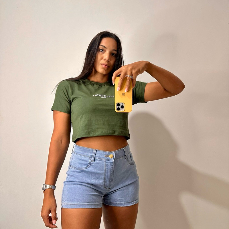 Conjunto feminino Short cropped Conjunto feminino adulto para seu dia a dia conjunto jeans feminino short jeans lycra