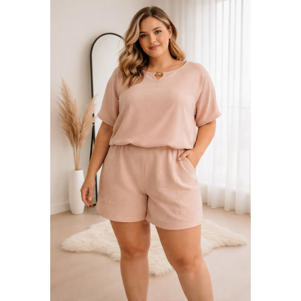 🛍️ DESCRIÇÃO COMPLETA ✨ Conjunto Feminino – Conforto e Estilo para o Dia a Dia ✨ Se você busca um look leve, bonito e confortável, esse conjunto é perfeito! Ideal para usar em casa, passeios ou até montar um look casual estiloso. ✔️ Blusa soltinha com elastico na cintura com manga curta ✔️ Short com cintura elástica (super confortável) ✔️ Tecido leve e fresquinho ✔️ Modelagem (G e GG) ✔️ Caimento perfeito no corpo 🚚 Envio rápido e seguro 📏 TABELA DE MEDIDAS (cm) Tamanho G (38) • Cintura: 34 cm • Quadril: 51 cm • Busto: 53 cm • Altura do short: 38 cm Tamanho GG (40) • Cintura: 36 cm • Quadril: 52 cm • Busto: 56 cm • Altura do short: 40 cm 📌 Pode haver variação de 1 a 3 cm