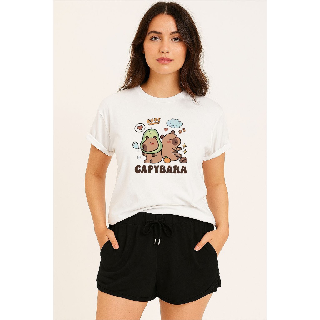 Conjunto FemininoT-shirt Camiseta + Short Moletinho Capivara Fofa Capybara Cute