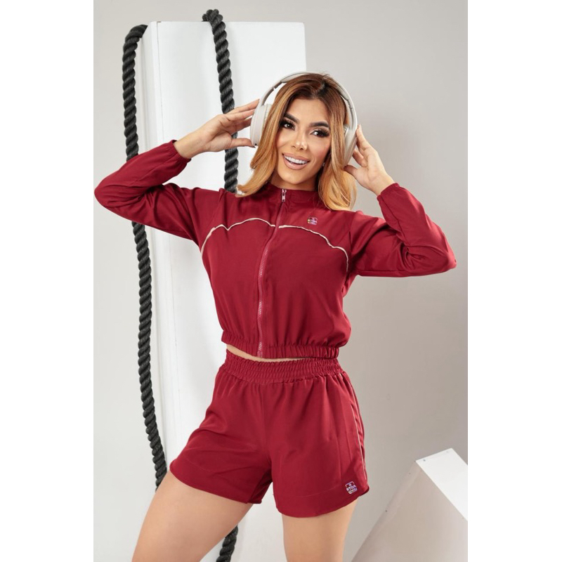 conjunto acompanha 3 peças top + Short Duplo + Casaco zero transparência poliamida com tactel