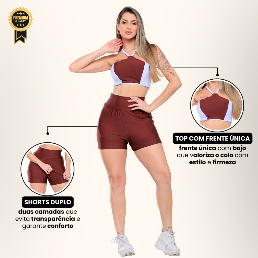 Conjunto Fitness Top Frente Única com Costas Vazadas e Shorts Duplo Leveza, estilo e segurança para o seu treino render muito mais. Esse conjunto foi desenvolvido para quem busca performance com visual marcante. O top frente única com tiras nas costas garante sustentação e muito estilo, enquanto o shorts duplo oferece liberdade de movimento sem transparência, ideal para treinos intensos ou atividades ao ar livre. O tecido é leve, respirável e conta com toque macio — perfeito para o dia a dia na academia. Detalhes da Peça • Top com bojo removível e frente única • Costas vazadas com tiras: estilo e ventilação • Shorts com camada interna que não marca • Tecido suplex premium (poliéster com elastano) • Leve, confortável e com excelente ajuste ao corpo • Secagem rápida e ideal para alta performance Disponível nos tamanhos M e G. M veste 38/40 G veste 42/44 Invista no seu treino com um conjunto que une conforto, estilo e funcionalidade. Garanta já o seu!