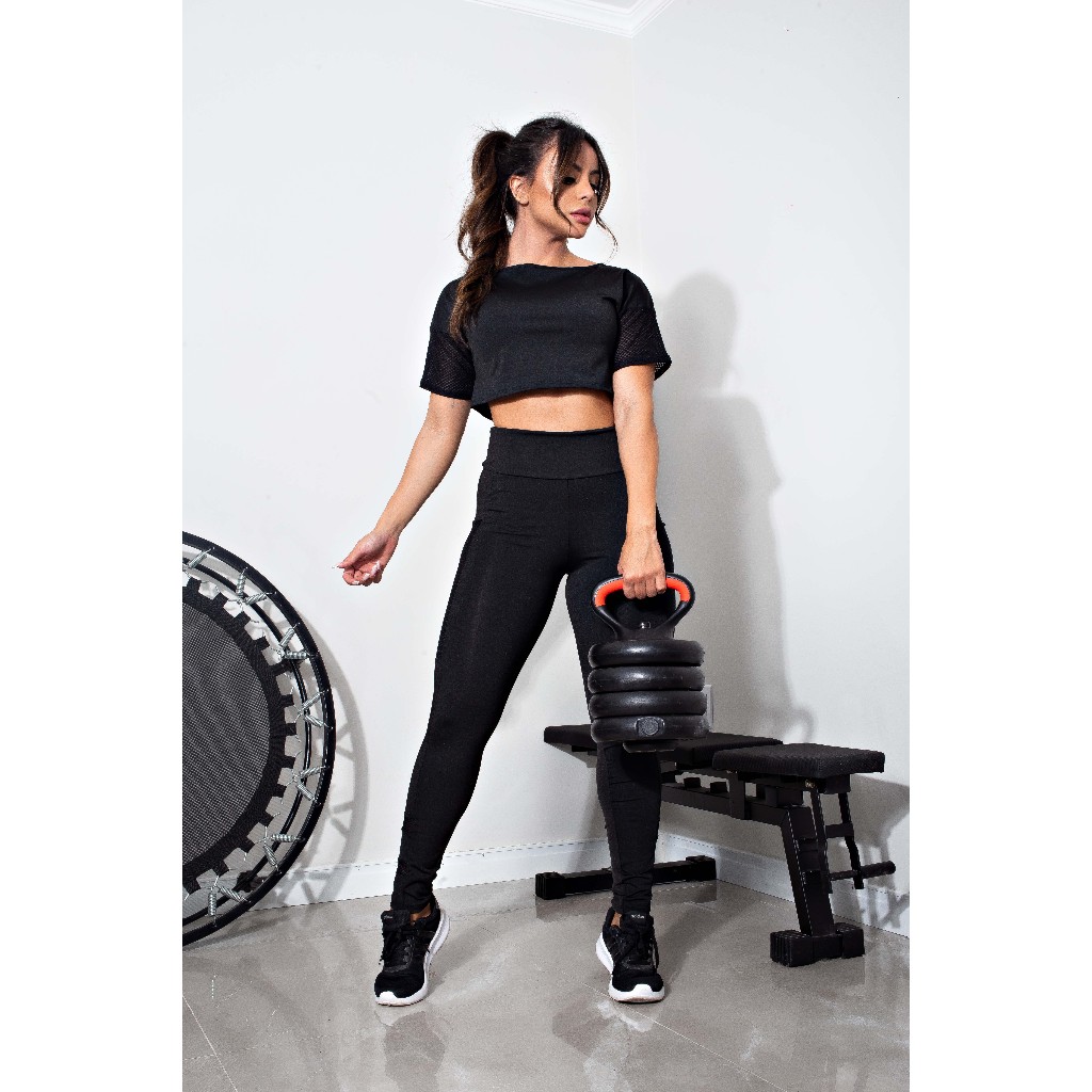 Conjunto fitness Cropped e Calça Legging Sem Transparência